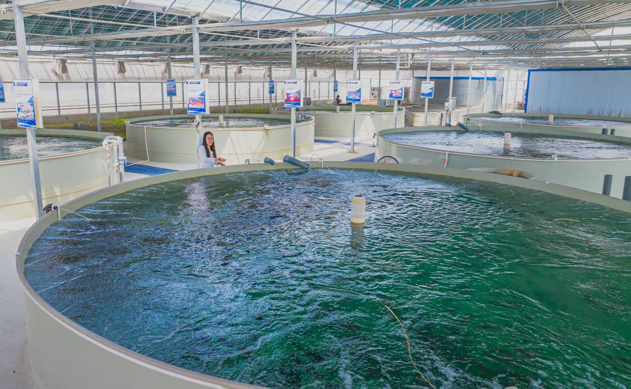 作为团结镇重点引进的现代农业项目,新疆罗布淖尔水产有限公司成功将原本制约农业发展的盐碱水转化为独特的养殖优势。富含矿物质、含盐稳定的天然盐碱水为海鲈鱼提供了理想的生长环境。此外,项目结合循环水处理与智能化养殖技术,不仅精准调控出适宜海鲈鱼生长的水质,又将净化后的养殖尾水用于灌溉,形成“一水两用”的闭环系统,实现了水资源95%以上的高效循环利用。